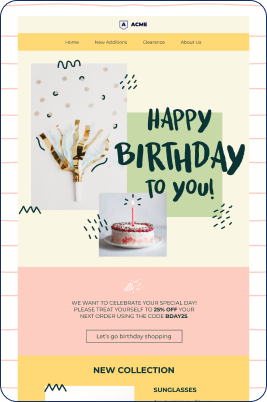 Add a flow of up to 3 happy birthday emails to your email marketing strategy.
